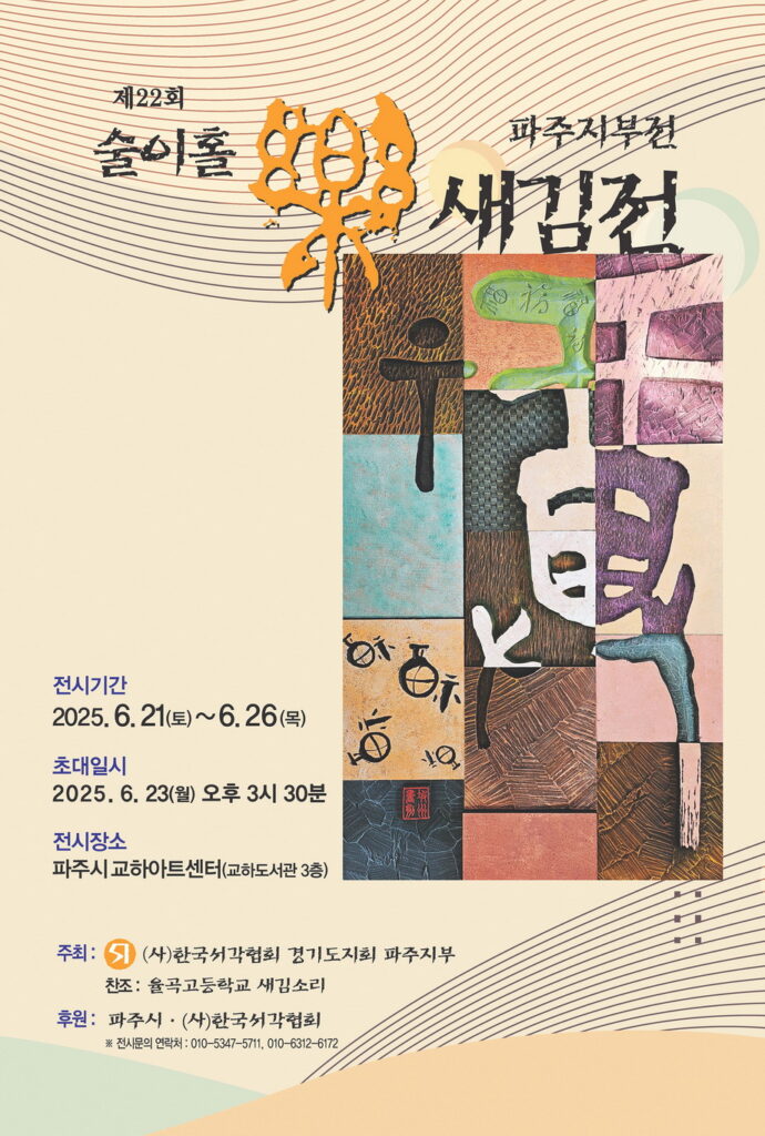 파주 서각인들이 주최하는  ‘제22회 술이홀 락 새김전’이’ 오는 6월 21일부터 26일까지 파주시 교하아트센터에서 열린다.