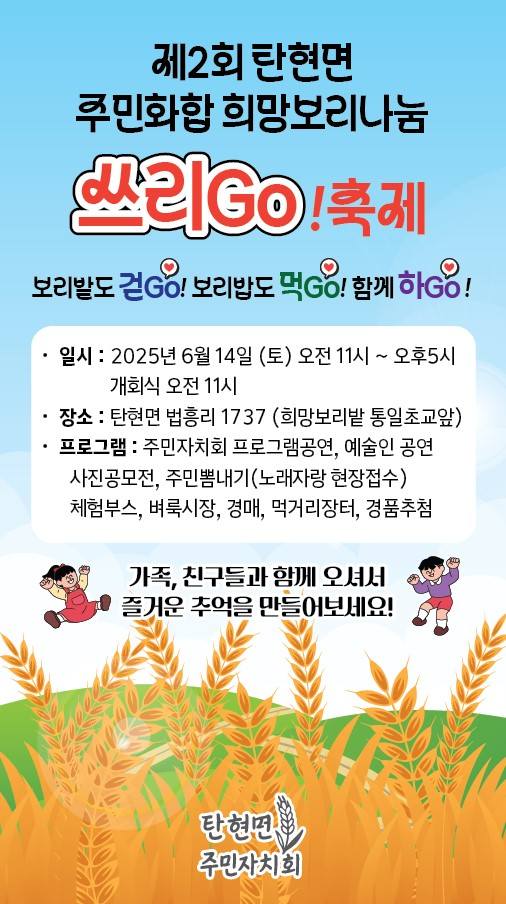 제2회 탄현면 주민화합 희망보리 나눔 행사 ‘쓰리Go!축제’ 개최