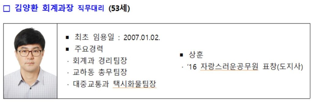 | 재정경제실 회계과 | 지방행정주사 | 김양환 | 재정경제실 회계과장 직무대리 |
