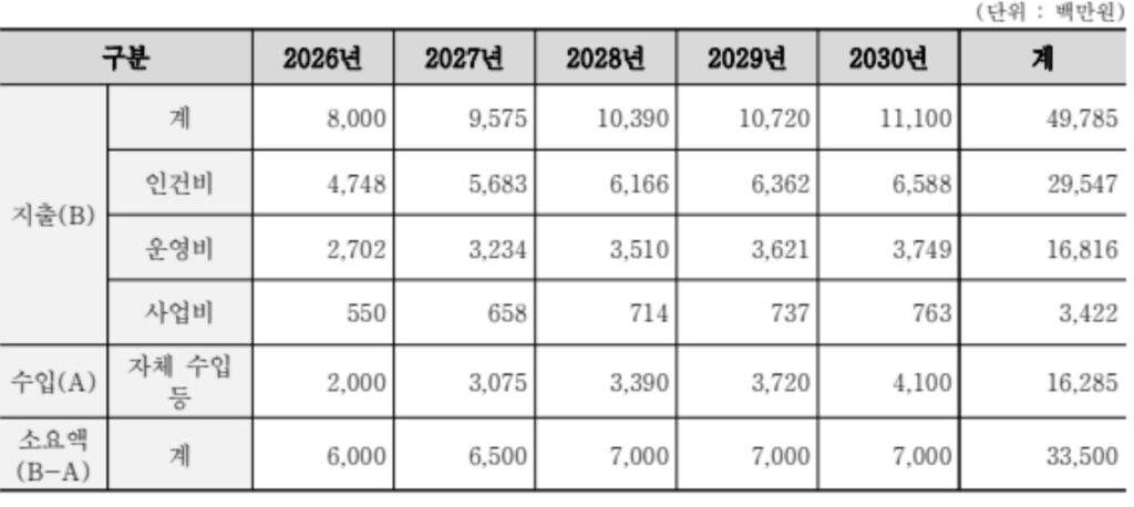 한편 파주시는 비용 추계서를 의회에 제출하면서 내년부터 2030년까지 80억원, 95억원, 103억원, 107억원, 111억원으로 5개 년간 500억원 정도 소요된다고 보고했다.
