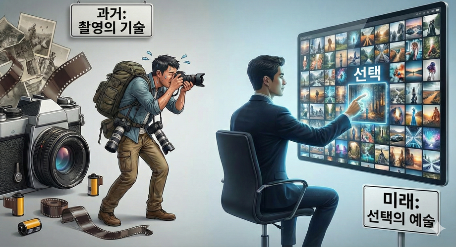 사진의 정의가 ‘빛으로 그린 그림’에서 ‘데이터가 생성한 예술’로 확장되고 있다. 과거 사진가의 미덕은 무거운 장비를 들고 현장을 누비며, 찰나의 순간을 포착하기 위해 숨을 죽이는 인내심에 있었다. 노출, 조리개, 셔터 속도의 삼박자를 기술적으로 완벽하게 제어하는 것이야말로 전문가의 영역이었다. 그러나 생성형 인공지능(AI)의 등장은 이 오랜 공식을 송두리째 흔들고 있다.