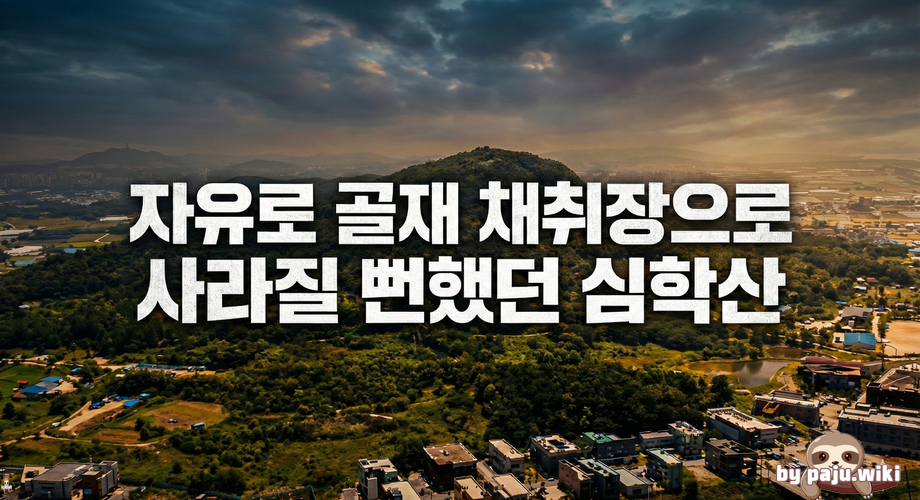 경기도 고양시와 파주시의 경계에 위치한 해발 194m의 심학산은 오늘날 한강 하구를 조망하는 지역의 명소이자 시민들의 소중한 휴식처로 사랑받고 있다. 하지만 이 산이 1980년대 말 자유로 건설 과정에서 영구히 사라질 뻔했던 아찔한 역사가 있었음이 뒤늦게 조명받고 있다.