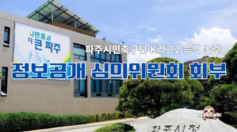 자세히 보기파주시는 ‘K리그2 승격’과 관련하여 공문서의 바공개 결정에 대한 파주위키의 이의신청에 대하여 기간연장을 통보했다. 기간연장 통보에 따르면 정보공개 결정 이의신청에 대하여