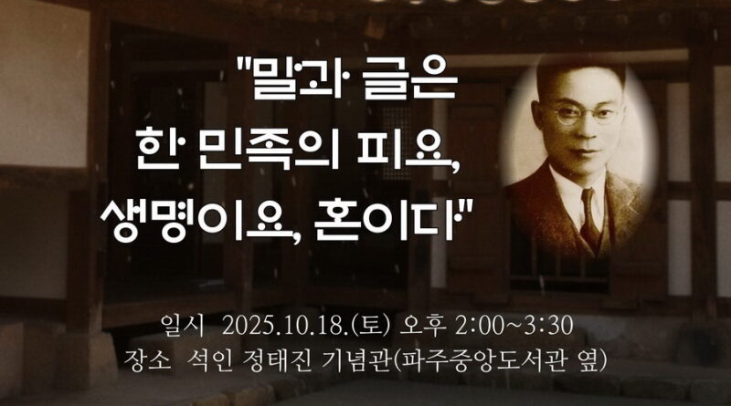 자세히 보기우리말 지킴이석인 정태진 선생님을만나는 특별한 시간! ??✨ 여러분을 초대합니다? 파주가 낳은 위대한 독립운동가이자 국어학자, 석인 정태진 선생님을 기리는 한글날 기념식에
