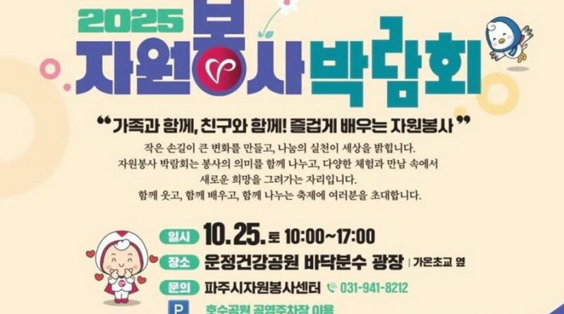 자세히 보기나눔을 실천하는자원봉사 박람회 가족과 함께, 친구와 함께!즐겁게 배우는 자원봉사 언제, 어디서 열리나요? 일시2025년 10월 25일 (토)오전 10시 ~ 오후 5시