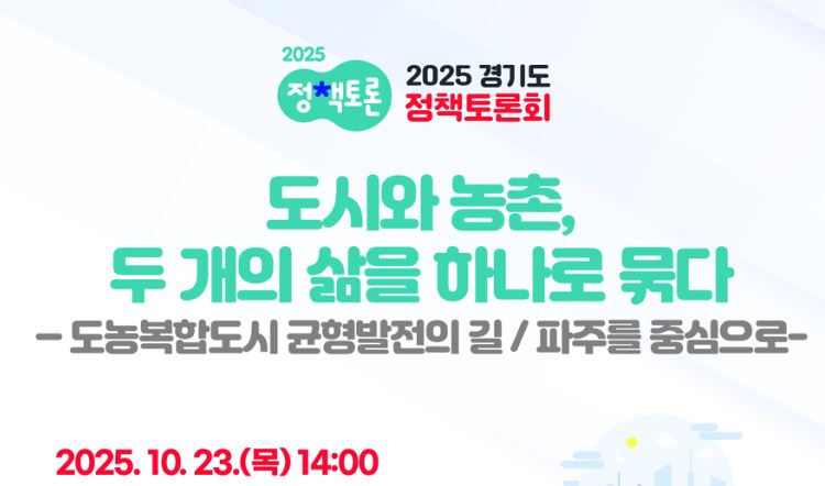 자세히 보기2025년 10월 23일 오후 2시에 파주시민회관 다목적실에서 경기도 정책토론회가 개최됩니다. 이번 토론회는 ‘도시와 농촌, 두 개의 삶을 하나로 묶다’라는 주제로