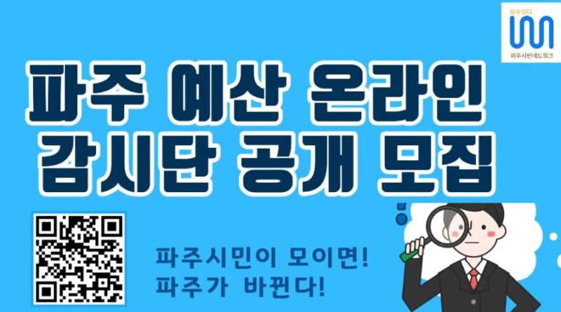자세히 보기세금 도둑 잡아라!파주 예산 온라인 감시단(파·예·온) 공개 모집! 파주시 예산 집행의 투명성과 효율성을 높일 시민 감시단을 모집합니다! 지역 현안에 관심